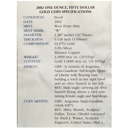 Be the first to review “2002-W 1 oz Proof American Gold Eagle Coin (Box + CoA)”
